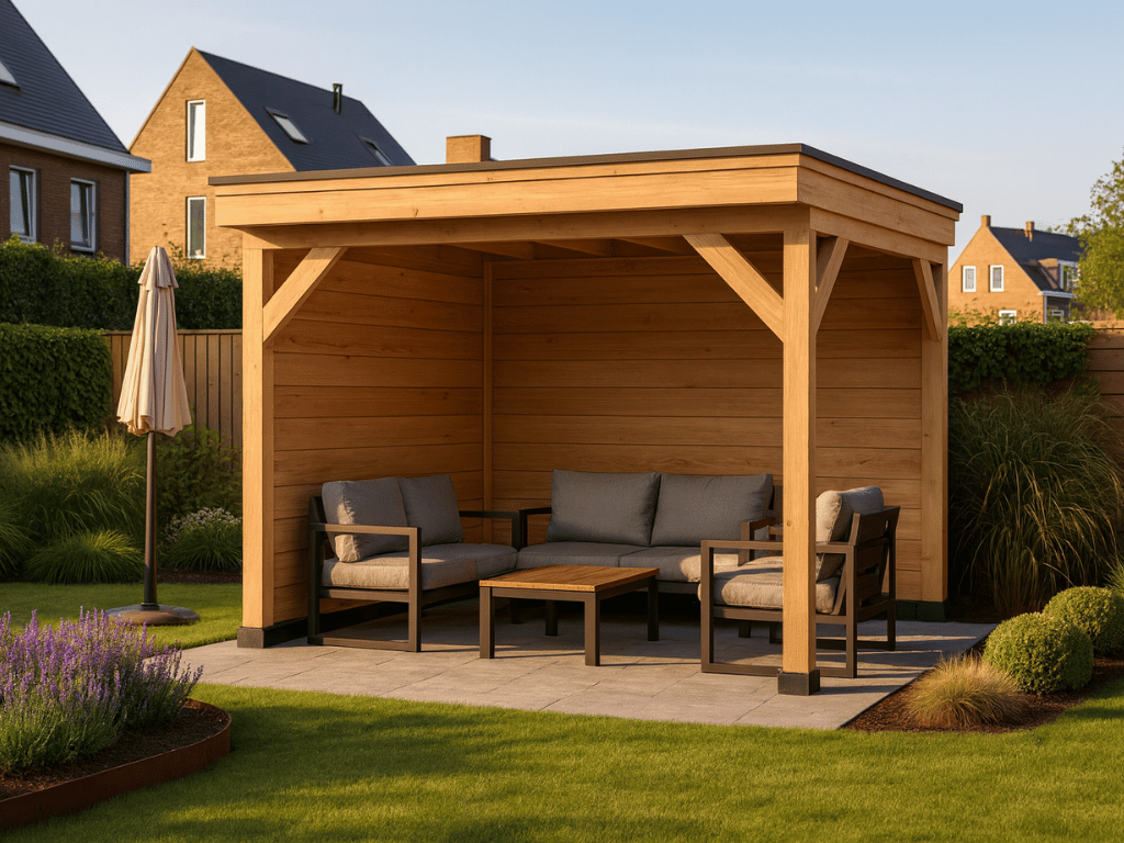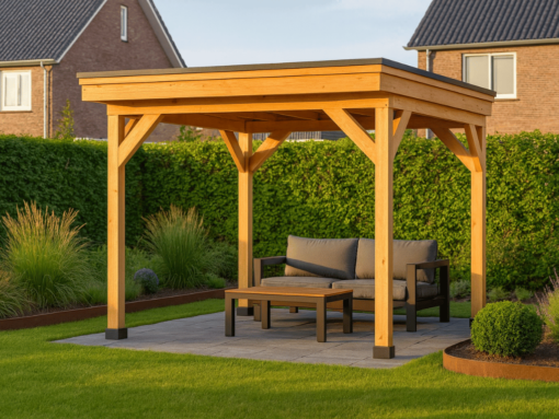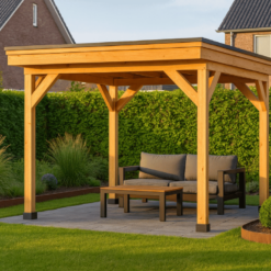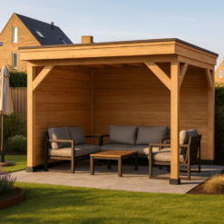 Deze douglas houten overkapping 300×300 cm is een perfecte mix van stijl, kwaliteit en gebruiksgemak. Ideaal voor wie zelf aan de slag wil en wil genieten van een sfeervol overdekt terras of veranda. Door de natuurlijke uitstraling van douglashout past deze overkapping in zowel moderne als landelijke tuinen.