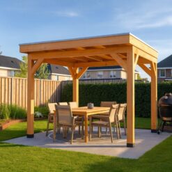 Deze douglas houten overkapping 300×300 cm met extra stevige 15×15 cm staanders is de perfecte mix van stijl, kwaliteit en gebruiksgemak. De robuustere uitstraling maakt dit model een echte toevoeging aan iedere tuin – landelijk of modern.