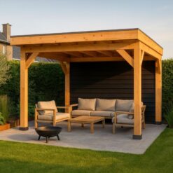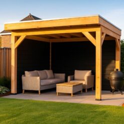 Wil je het hele jaar door genieten van het buitenleven? Dan is deze douglas overkapping van 300×300 cm een uitstekende keuze. Dankzij de extra dikke 15×15 cm staanders krijgt dit model een nog robuustere uitstraling en voelt de constructie bijzonder stabiel aan. Dit maakt de overkapping niet alleen praktisch, maar ook een luxe blikvanger in de tuin.