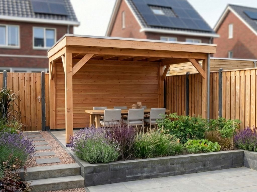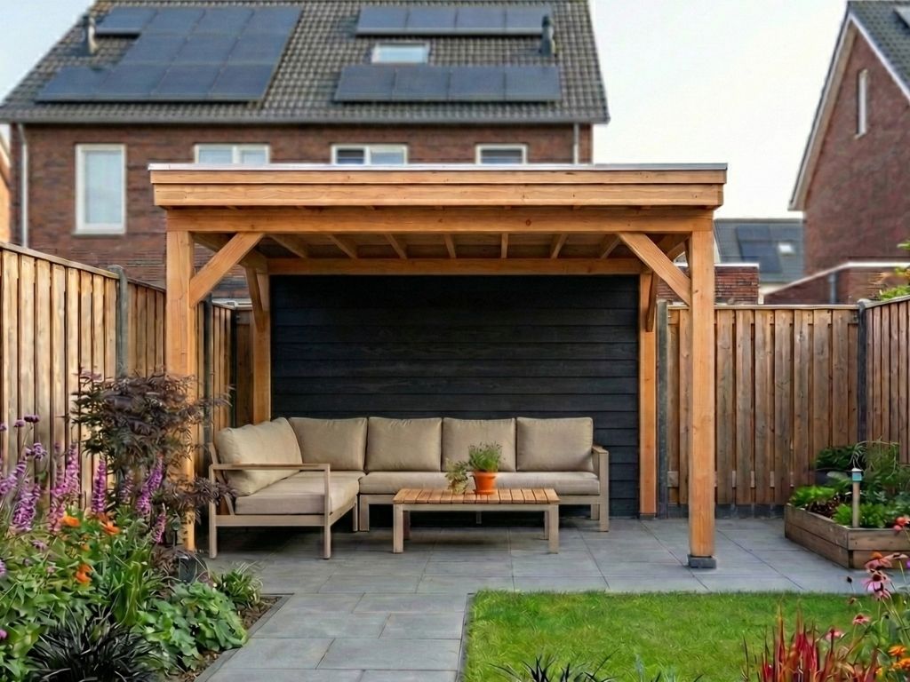 - Ruim formaat voor optimaal comfort – De overkapping van 400 cm breed en 300 cm diep biedt genoeg ruimte voor een loungeset, buitenkeuken of ruime eettafel. Ideaal als overdekt terras of als gezellige zithoek in je tuin.