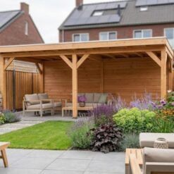 Deze douglas houten overkapping 500×300 cm Geschaafd is een perfecte mix van stijl, kwaliteit en gebruiksgemak. Ideaal voor wie zelf aan de slag wil en wil genieten van een sfeervol overdekt terras of veranda. Door de natuurlijke uitstraling van douglashout past deze overkapping in zowel moderne als landelijke tuinen.