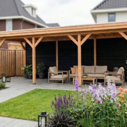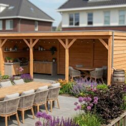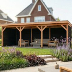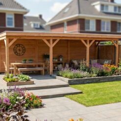 Deze douglas houten overkapping 750×300 cm Geschaafd is een perfecte mix van stijl, kwaliteit en gebruiksgemak. Ideaal voor wie zelf aan de slag wil en wil genieten van een sfeervol overdekt terras of veranda. Door de natuurlijke uitstraling van douglashout past deze overkapping in zowel moderne als landelijke tuinen.